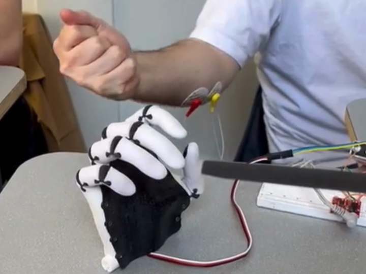 Seconda iterazione di una mano bionica controllata con dei sensori EMG e un modello di Machine Learning, progettata per chi non ha più una mano, ma manca ancora qualcosa...